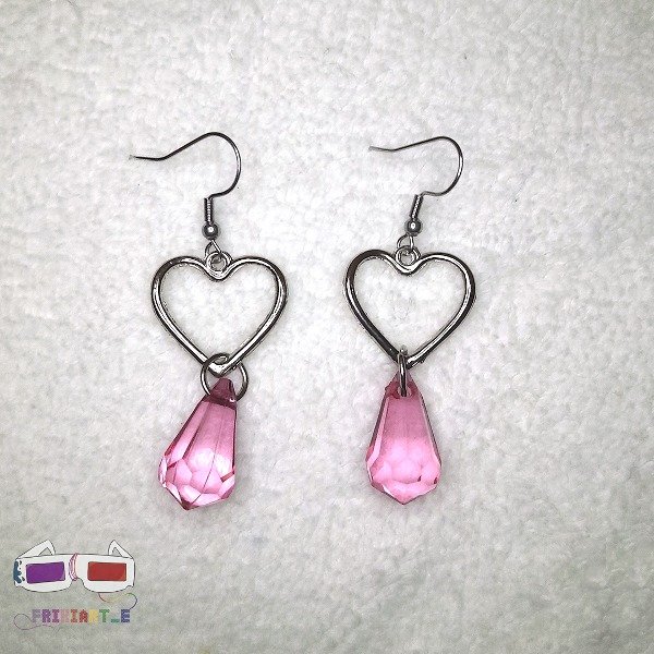 Aros creados artesanalmente con terminación en acero quirúrgico. Contiene corazones plateados con una gema acrílica de color rosa en su medio que luce el diseño. Diseño original, rosas pero delicados. Ideales para completar un estilo barbiecore o para terminar ese outfit que necesita algo de color. Son muy elegantes, livianos y originales. Tienen 3 cm de largo.