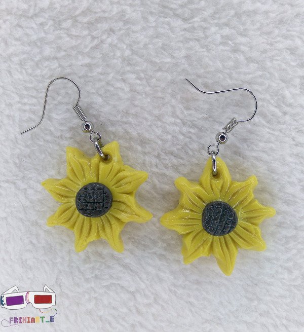 Aritos de porcelana fria de flores amarillas, tipo margaritas. Hay de acero quirurgico o comun.