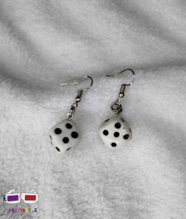 Aros de porcelana fria en forma de dados, hechos artesanalmente. Vienen con terminación en acero quirúrgico o cromado (fantasía).