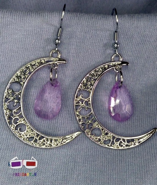 Aros creados artesanalmente con terminación en acero quirúrgico. Contienen dijes en forma de luna con una gema acrílica de color lila colgante. Tienen una vibra muy esotérica y misteriosa. Ideales para muchos estilos, consultar por diferentes colores de la gema por privado. Diseño original. No son pesados. Tienen 4 cm de largo. Son muy elegantes y originales.