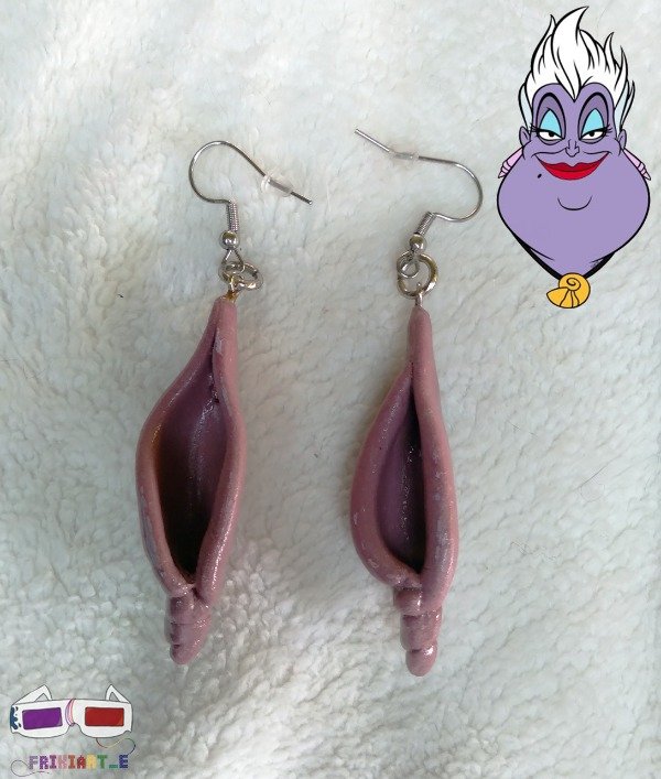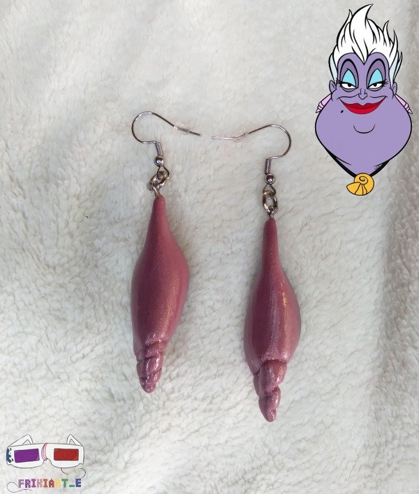 Aros de porcelana fria como los de Ursula (La Sirenita). Vienen con terminación en acero quirúrgico y en un cartoncito tematico con la imagen del personaje.