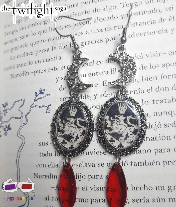 Aros realizados artesanalmente con el logo de la familia Cullen de la saga Crepúsculo.