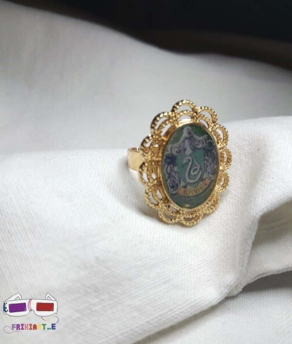 Anillo metálico, realizado artesanalmente con la imagen del escudo de Slytherin.